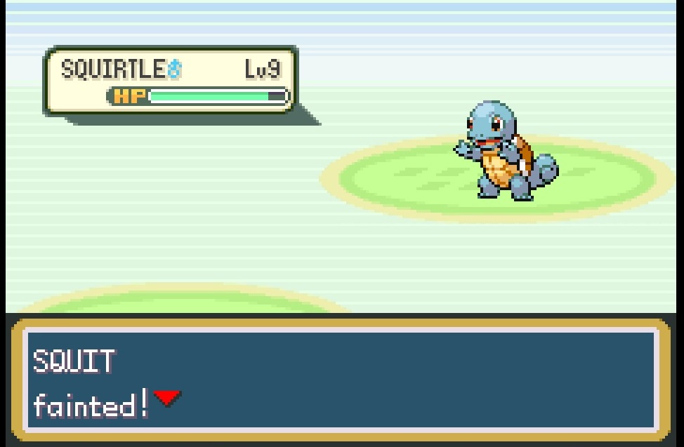 [[Nilbog Notes: This battle is entirely optional and missable, and the one time starting with Bulbasaur will work against you as that's weak to both Flying and Fire (in case it wasn't obvious last time, your rival picks the Starter with a type advantage against yours) and you can't catch any effective counters for Charmander this early. Choosing Squirtle would have allowed Agnew's Peck to do some big damage to Bulbasaur. Ironically I have the easiest setup as there is a Pokémon we can meet in the next section that can easily take both Pidgey and Squirtle apart, but for the sake of an interesting narrative I chose to come here now instead of later]]