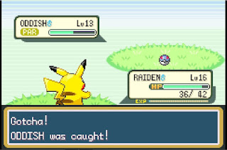 Oddish is exclusive to Red/FireRed with Bellsprout as its counterpart. I raised an Oddish in my very first playthrough of Red back when I was 12-13; It was just meant to help vs the second gym but proved pretty dependable. And even though I benched it towards the end of midgame I've always had a fondness for the line ever since. Finally taking one to the finale was one of the things I was most looking forward to in doing this run with this particular set of rules.]]